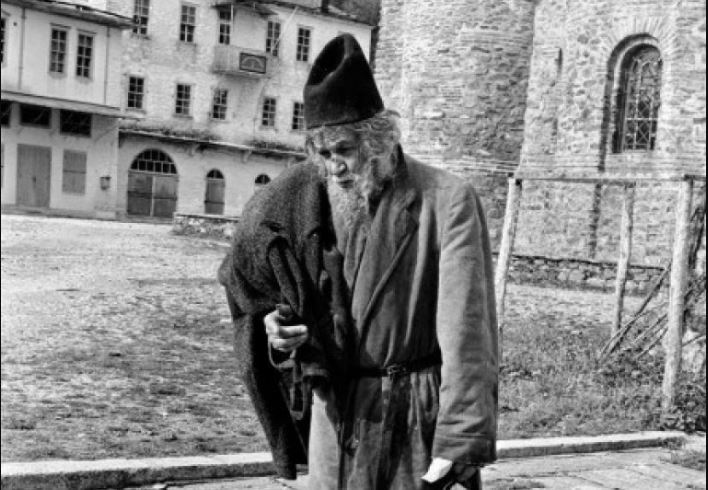 Μια φορά καθώς πηγαίναμε μαζί με τον ασκητή πού με φιλοξενούσε για ψώνια στις Καρυές είδα από μακριά ένα γεροντάκι να λιάζεται έξω από ένα ερείπιο.