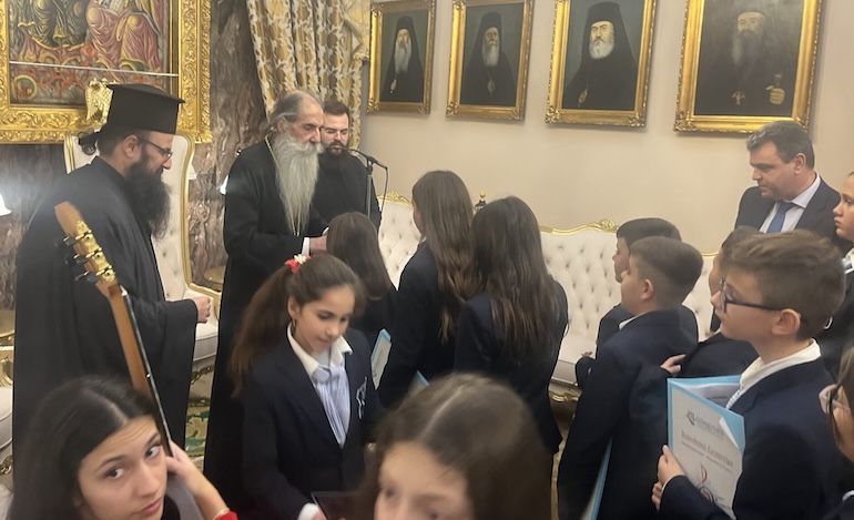 Ευχήθηκε υγεία, πρόοδο και κάθε ευλογία από το Θεό και αναφέροντας πως ο Θεός έγινε και ο ίδιος βρέφος και μικρό παιδί λέγοντας σε όλο τον κόσμο ότι εάν δεν γίνεται σαν τα παιδιά δεν θα μπείτε στη Βασιλεία του Θεού, επεσήμανε ότι «εσείς μας διδάσκεται, μας εμπνέετε, μας οδηγείτε, μας φωτίζεται και να ξέρετε ότι σας αγαπάμε πολύ».