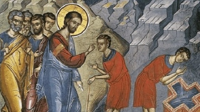 Κατ αρχάς, διαβάζοντας αυτή τήν ευαγγελική περικοπή βρισκόμαστε μπροστά σέ μιά πράξη δημιουργίας πού αποδεικνύει ότι ο Χριστός, ως ένα από τά Πρόσωπα τής Παναγίας Τριάδος, είναι Θεός καί δημιουργός τών ανθρώπων. Ο τρόπος μέ τόν οποίο ο Χριστός θαυματούργησε, φανέρωσε καθαρά τόν τρόπο τής δημιουργίας τού ανθρώπου από τόν Τριαδικό Θεό.