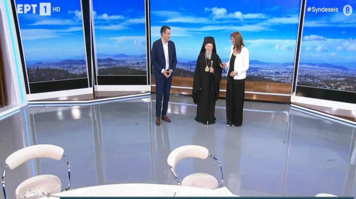 Κατά την επίσκεψή του, την ώρα που η εκπομπή «Συνδέσεις» με τον Κώστα Παπαχλιμίντζο και τη Χριστίνα Βίδου ήταν στον «αέρα», ο Βαρθολομαίος μπήκε στο στούντιο, με τους δύο παρουσιαστές να τον υποδέχονται θερμά και να του ζητάνε την ευχή του.