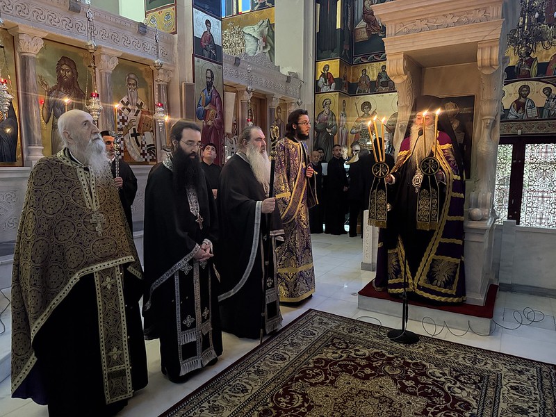 Στην Ακολουθία του Κατανυκτικού Εσπερινού της Δ΄ Κυριακής των Νηστειών (Αγίου Ιωάννου της Κλίμακος), ο οποίος τελέστηκε στον Ιερό Ναό Αγίου Ελευθερίου Καμινίων, χοροστάτησε την Κυριακή 22 Μαρτίου 2026 ο Σεβασμιώτατος Μητροπολίτης Πειραιώς κ. Σεραφείμ, ο οποίος κήρυξε, όπως κάθε Κυριακή, τον θείο λόγο.